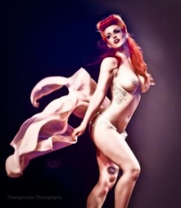 Around that time I also did a photoshoot with Richard Kern which was interesting because it was so not like anything I have ever done before. Absolutely no makeup (and no pasties as well). Still fun, just to try out a different style of ‘sexy’, although I do much prefer glamour to au naturel. The day after I had a shoot with Orangeroads for their workshop sessions and Toni snapped this pic: