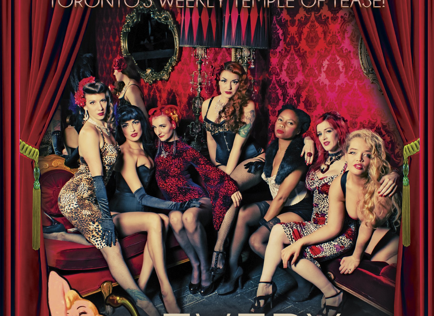 Each week we bring you a fresh burlesque show & social at Toronto’s notoriously sexy rock n rolla cabaret lounge. You’ll see multi-genre local favourites, travelling performers from across North America, newcomers, drag and gender bending excellence, fantastic variety and more. Beauty comes in all shades, sizes and genders and you’re bound to see it all on our stage at some point or another.